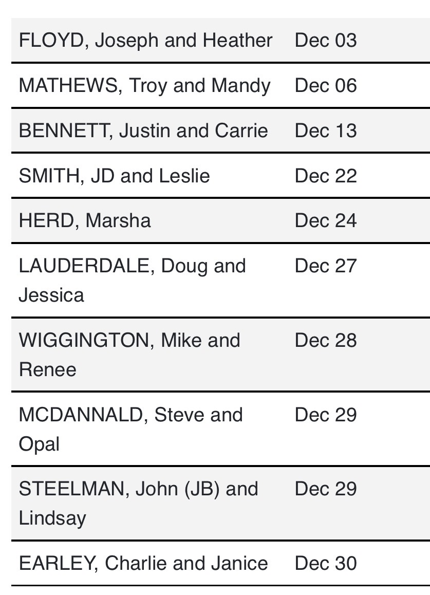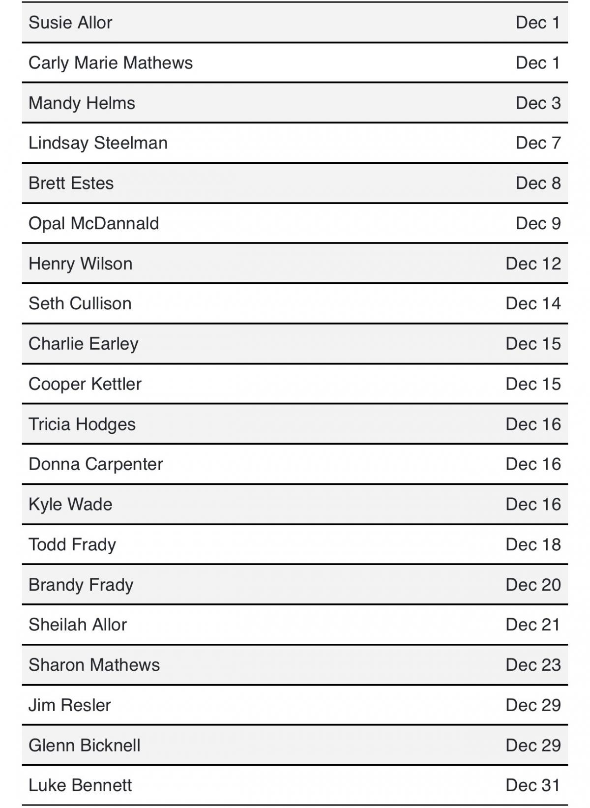 Harvest December Birthdays